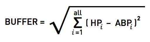 Using the sum of the ABP estimates is also a problem. Doing so doesn’t account for any of the natural variation in the tasks, or the asymmetry of the completion time distribution function. The approach we use is to add a project buffer to the sum of the ABP estimates. You can think about the project buffer as receiving a contribution from each task in the project. You don’t know in advance which tasks will draw upon the project buffer, but you want to make sure that each task has contributed to it in proportion to the likelihood of need. The spread between the ABP and HP estimates indicates the potential for a task to go over and make a withdrawal from the project buffer.