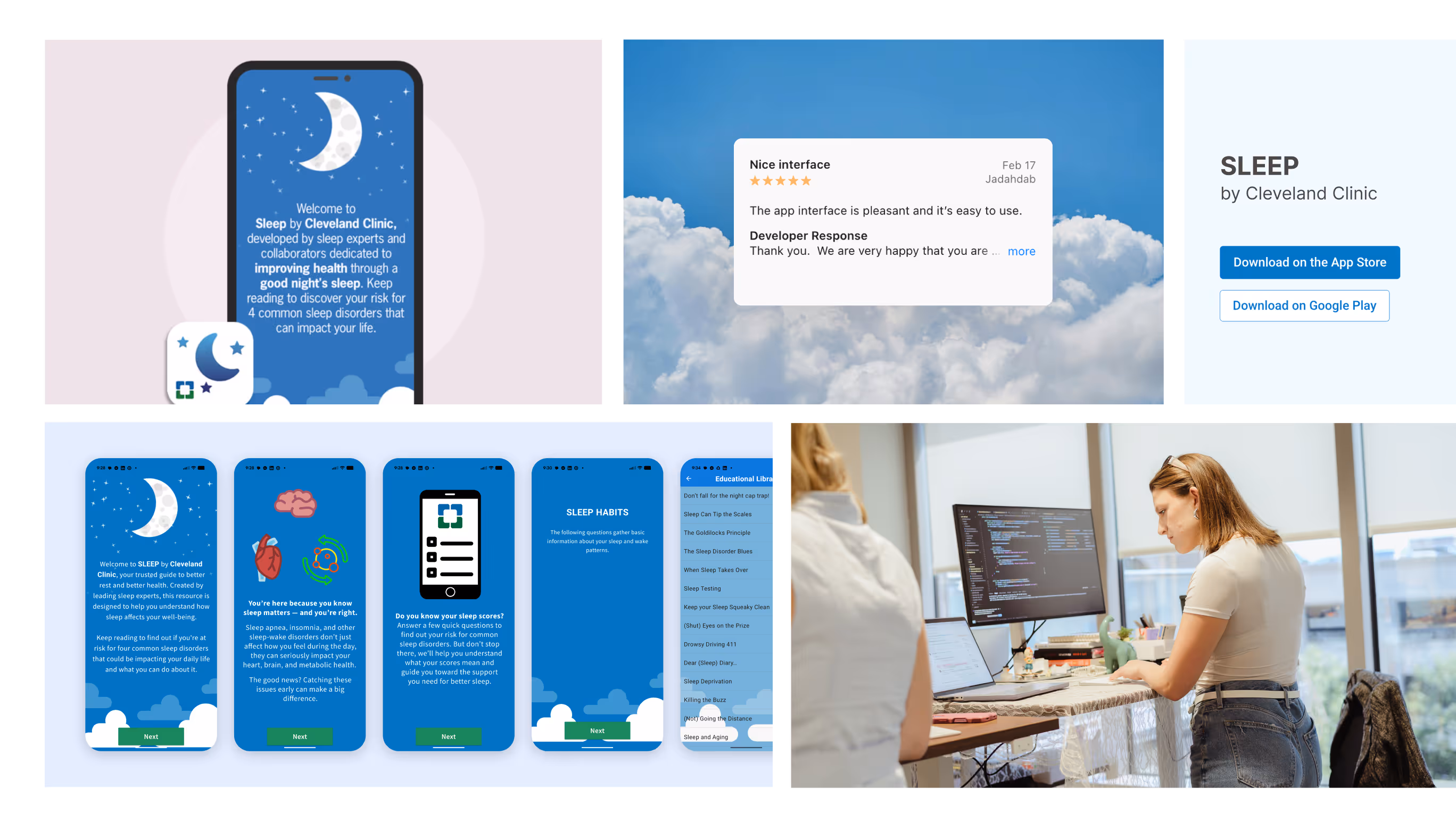 Atomic Object rebuilt the existing iOS-only app as a secure, cross-platform mobile experience using React Native. The new app, called SLEEP by Cleveland Clinic, empowers any adult to self-screen for sleep disorders, with the option to share results with a provider. It also supports clinical research through anonymized data collection.